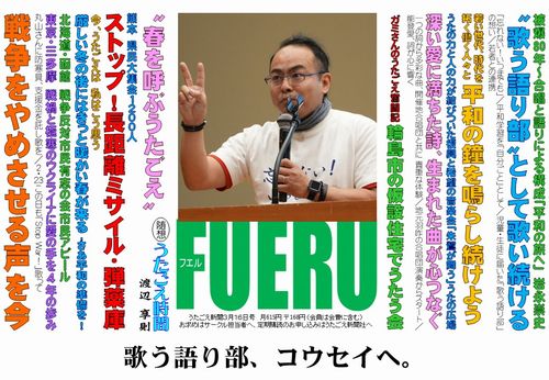全国各地で進んでいる弾薬庫整備計画。熊本でのSTOP!集会が開かれ、ここでもうたごえの出番でした。 |