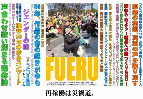 2月20日 埼玉会館小ホール埼玉県平和委員会、埼玉憲法会議が主催し、開会前に埼玉のうたごえが演奏。 こういう集会で最適なうたごえの曲は、みなさんはどんな曲を思い浮かべますか?埼玉の選曲は4面で。 |