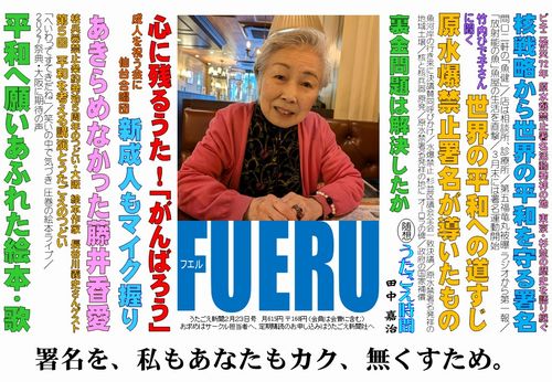 | 先の衆議院議員選挙の結果、私たちの出番が増えそうですね。 3月も忙しいですよ。 今年はメーデー歌集は早めに出版されましたが、いつもの「メーデー平和歌集」の「平和」パートを早く発売してもらいたいですね。 |