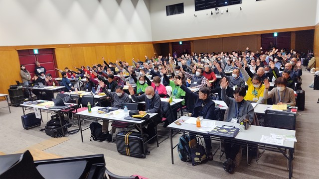 総会2日目、採決の瞬間です。