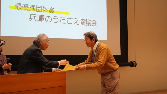 2025年日本のうたごえ祭典in神戸・ひょうごを主催した兵庫のうたごえ協議会が最優秀団体に表彰されました。