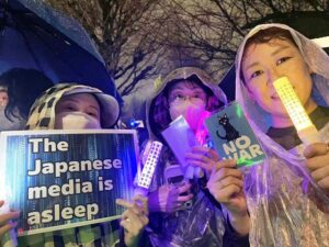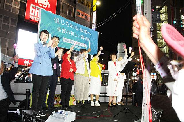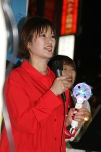 | 市民連合共同代表の菱山南帆子さん。 ペンライト集会のペンライトの考案者さんです。 |