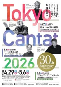 | 今年もTokyo Cantat(東京カンタート)がゴールデンウィークの期間中に開催されます。 今年は30回記念として、世界的に活躍する招へい講師と多彩な合唱団によるすばらしい演奏に期待が持てそうです。 |