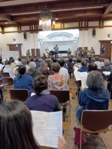 国鉄大阪合唱団号笛は、祭典オルグ第1弾として綾部で開催されるうたごえ喫茶に参加しました。 |