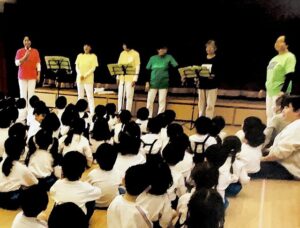 この日は80人の子どもたちの前で7人のメンバーが演奏。 「つくしの坊や」はYouTubeで見つかりましたけど、「沖縄のきらきら星」って?これでいいのでしょうか? |