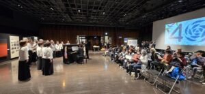 | 長野合唱団の小川さんから、大交流フェスタでの仕掛けについて解説。客席のままで歌えるという仕組みになるそうです。 | ![]() |