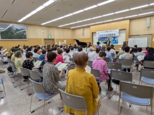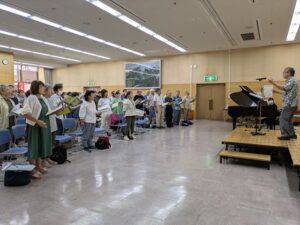 西宮さくらんぼ合唱団は地域の皆さんを組織して祭典合同曲の練習に取り組んでいます、思わぬ伏兵に苦労をしながらもあと2か月後の祭典に向けて準備を整えています。伏兵の正体は5面で。 | ![]() |