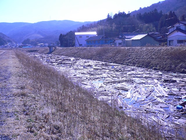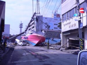 | 「群青」が歌われる背景の東日本大震災。 石巻市では津波で漁船が打ち上げられて・・・ |