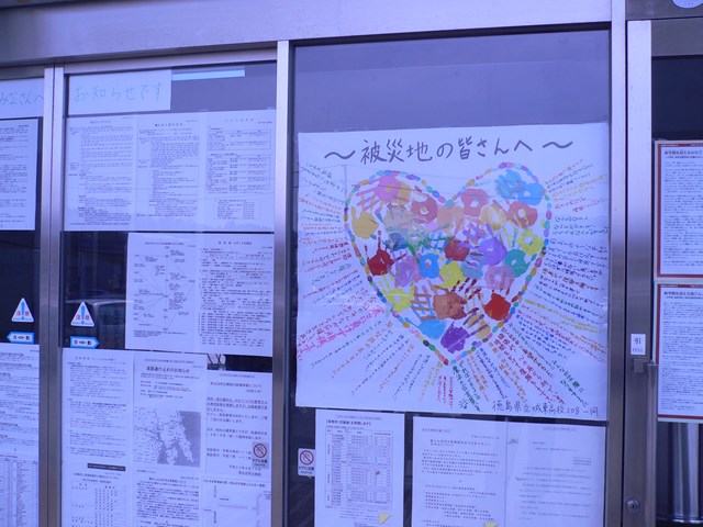 | 四国の高校生からの激励の寄せ書き | かもタンの生みの親、石ノ森章太郎記念館は石巻市にあります。 |